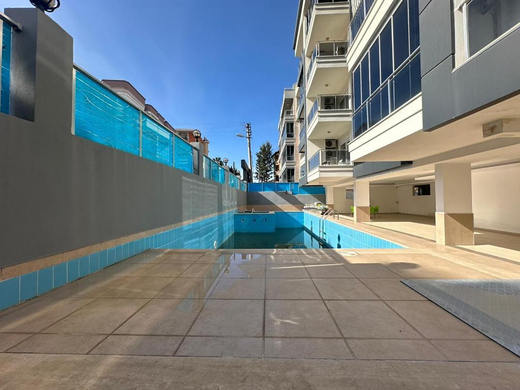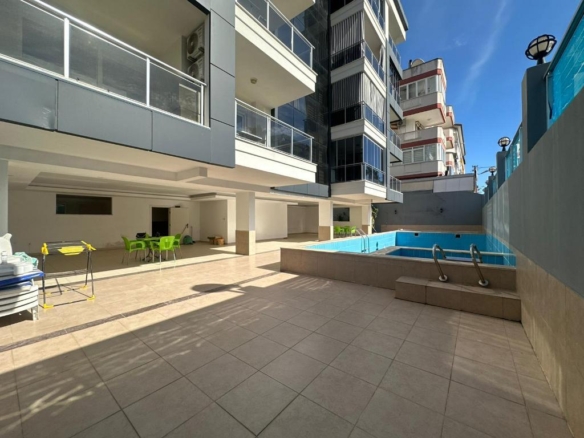 The building offers several amenities designed for comfort and security. A 24/7 camera surveillance system ensures peace of mind, while the elevator provides easy access to all floors. On warm Alanya days, residents can cool off and unwind in the outdoor swimming pool, creating a pleasant holiday atmosphere right at home.