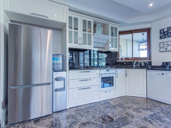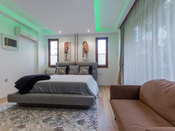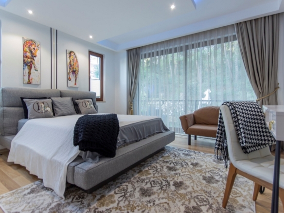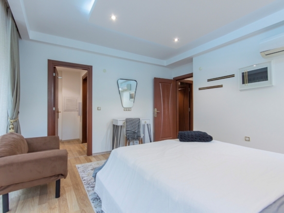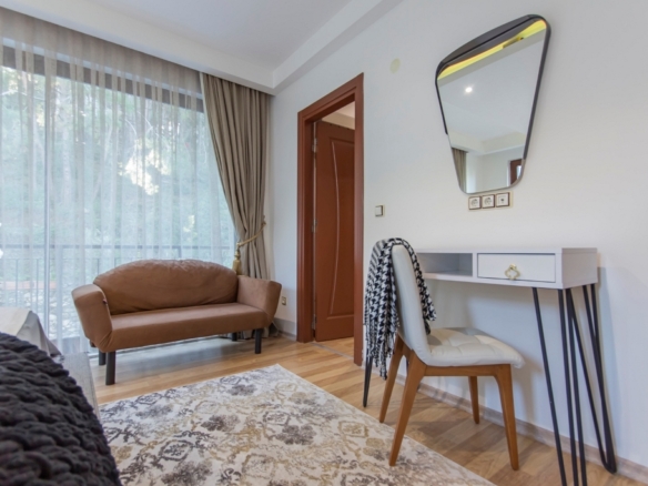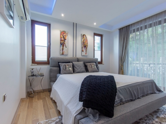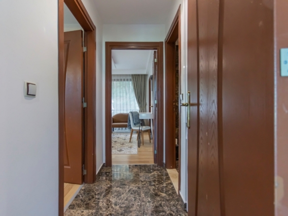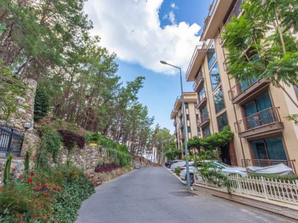 The fully furnished 2+1 apartment, located on the first floor, spans a generous 110 square meters and welcomes you with a bright, open atmosphere. Thanks to its south, west, and north-facing orientation, the home is filled with natural light throughout the day, creating a warm and inviting living space. From inside, you can enjoy breathtaking views of both the sea and the surrounding forest, a rare combination that brings a sense of balance and calm to everyday life.