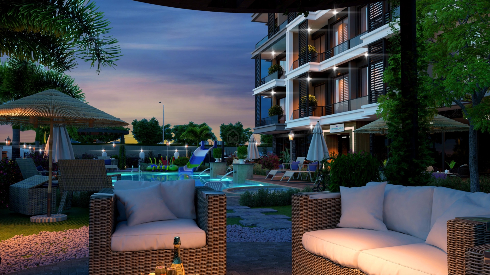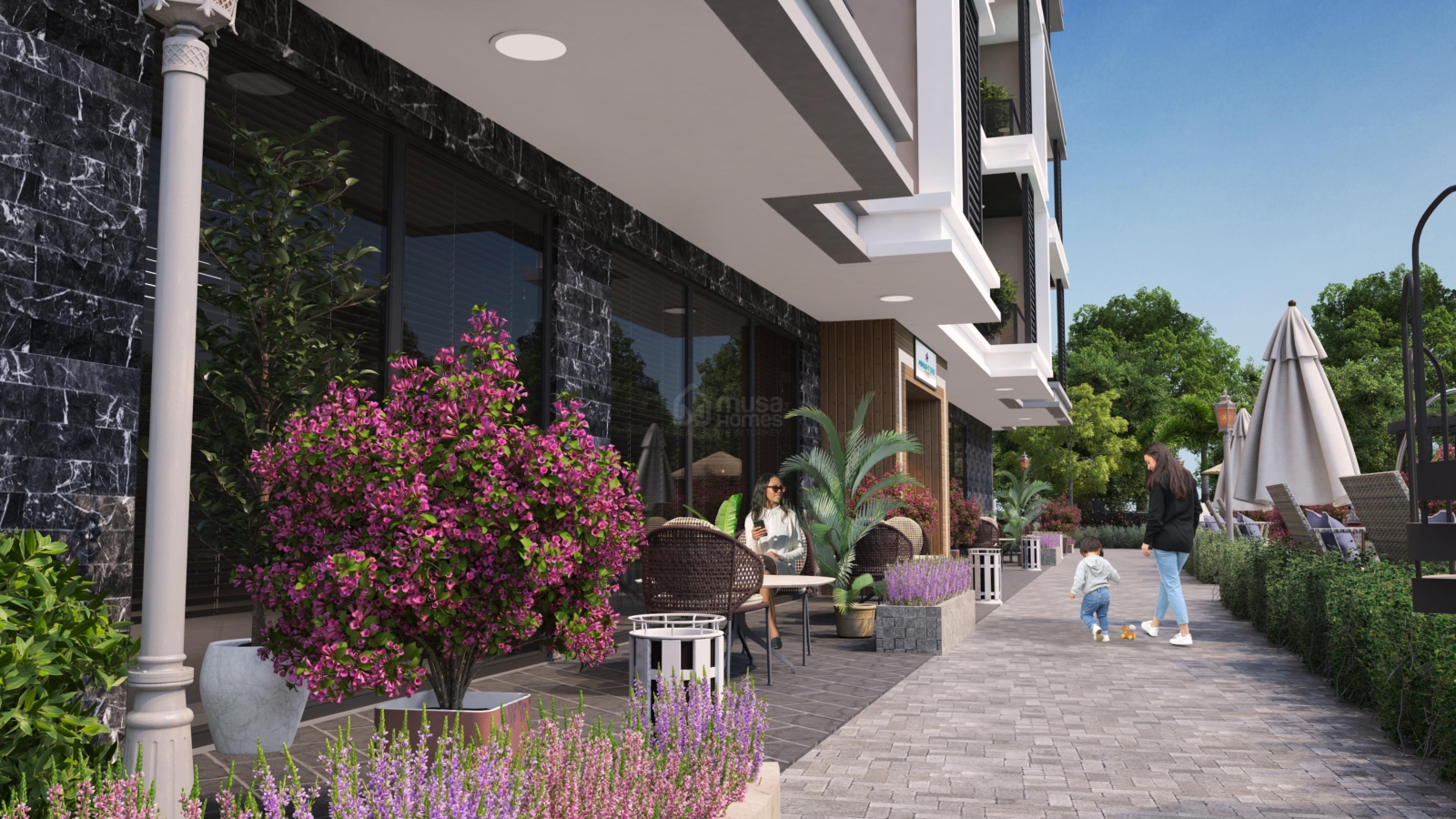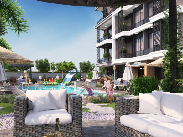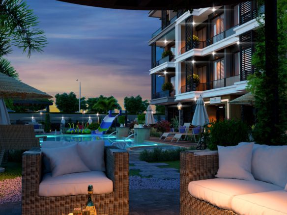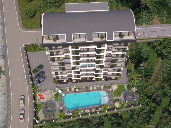 The total area of this project is 1614 m2. It has 1 block, 7 floors and 36 apartments in totally project.  There are 2 types of apartments in this project. These are 1+1 and 2+1. It is 1500 m away from sea. However, our project is waiting for you to offer you a spacious and beautiful life with its outdoor living area, both its pool and garden.