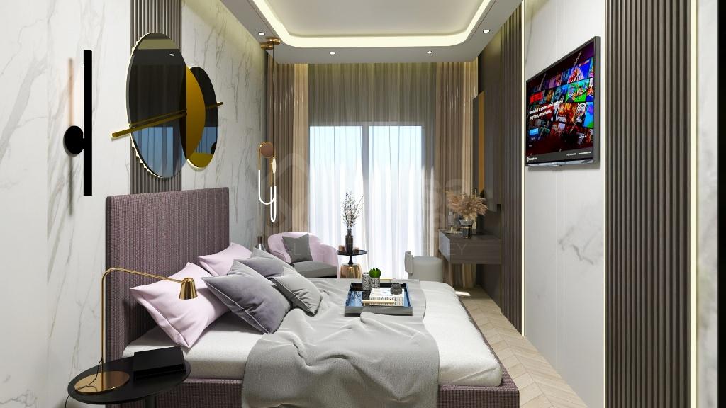 The residence comprises a single, beautifully designed block with five floors, housing a total of 36 apartments. The apartments are thoughtfully planned to suit a variety of lifestyles: from 1+1 units ranging from 55.80 to 61.60 m², ideal for singles or couples, to spacious 2+1 penthouses between 110.10 and 124.60 m², perfect for families or those seeking more room and panoramic views. Every apartment comes fully furnished with household appliances and air conditioning, ready for immediate move-in or rental, with all registration costs for Tapu included in the price.