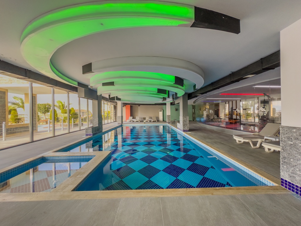 Sunlit days can be spent by the outdoor pool, while cooler moments invite you to relax in the indoor pool, Turkish bath, sauna, or steam room. Fitness enthusiasts can stay active in the gym, and evenings can be enjoyed in the private cinema or peaceful resting areas.
