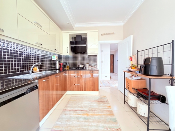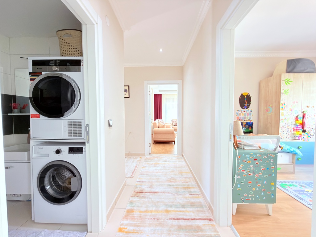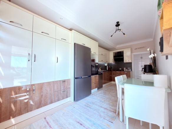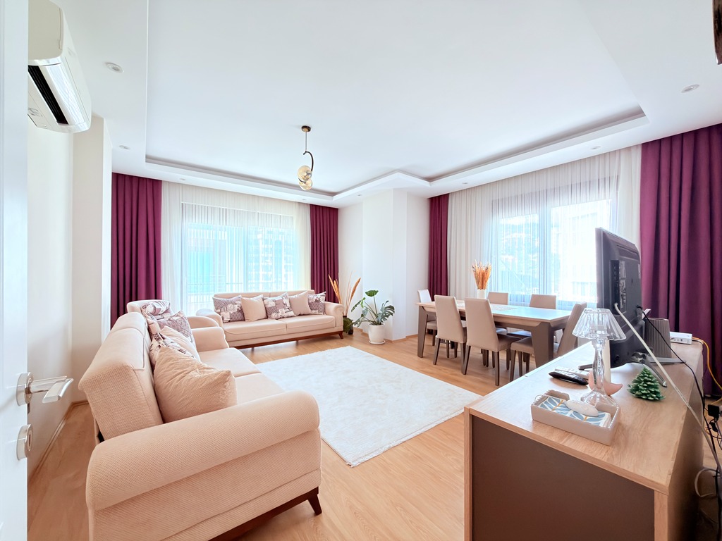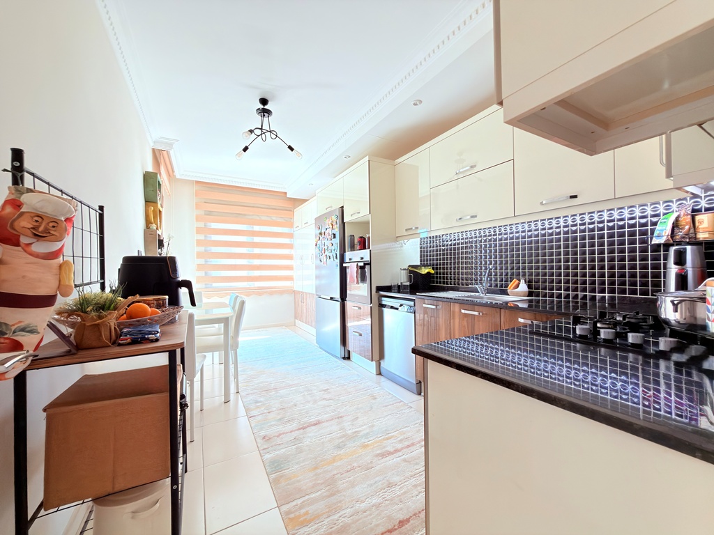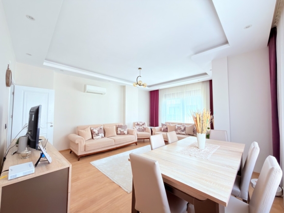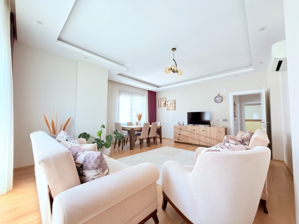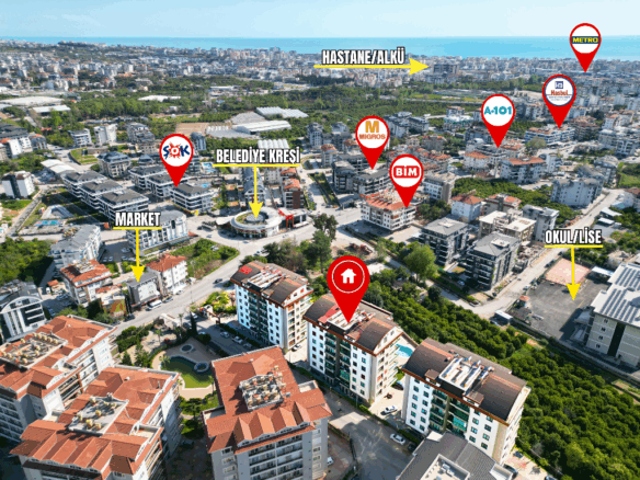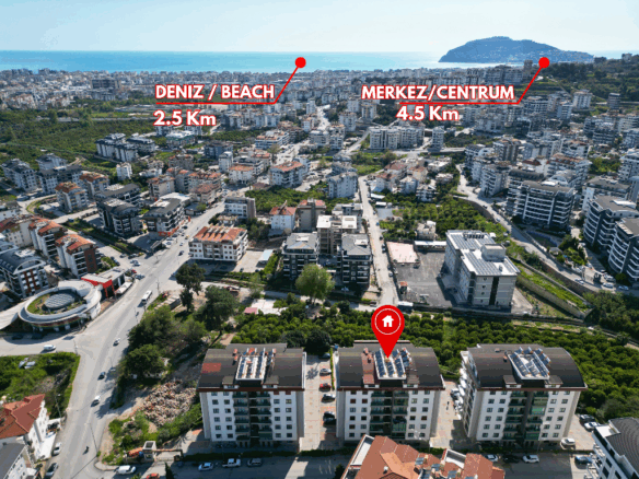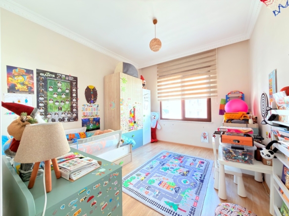 In the peaceful and well-loved neighborhood of Oba, a spacious apartment awaits on the 4th floor of the elegant Akasya Garden residence. Built in 2016 and spread across three blocks, this modern complex offers both comfort and a sense of community.
