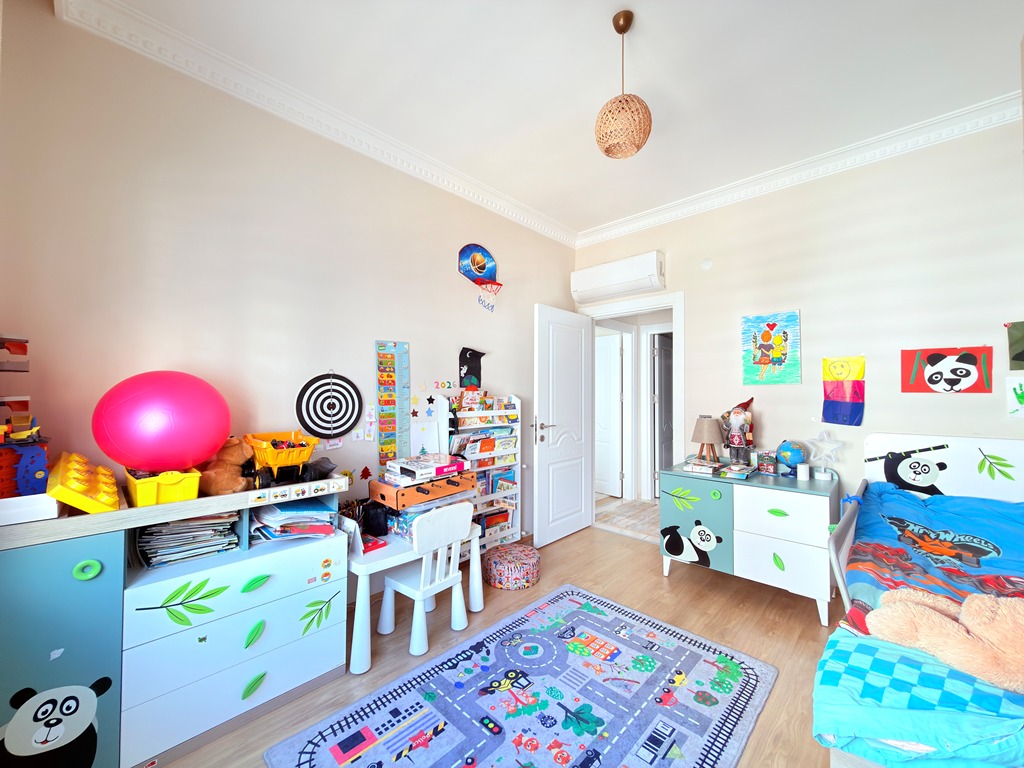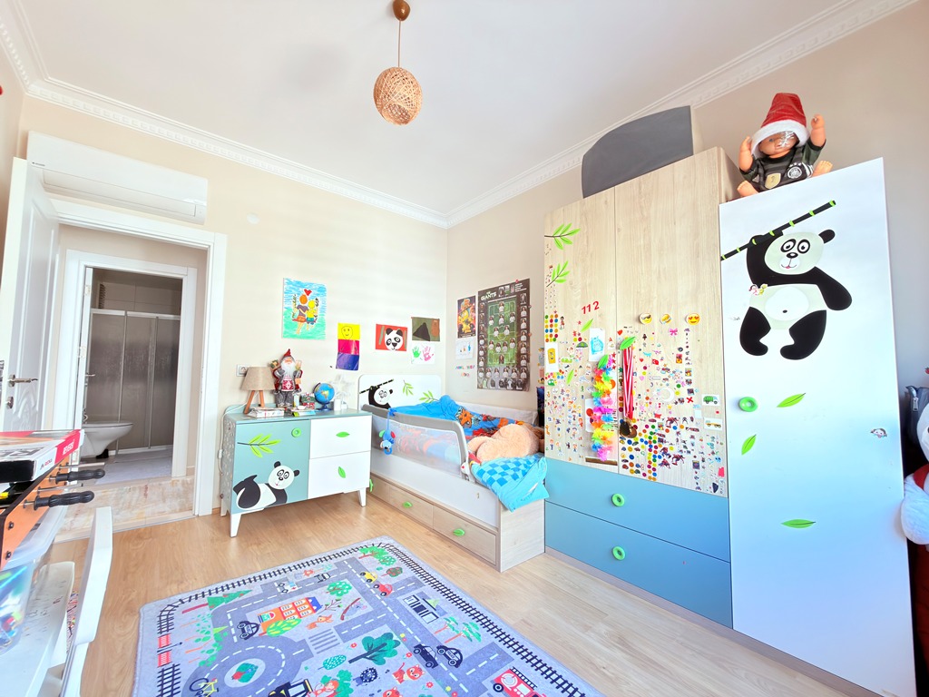 As you step inside this 160 m² home, you are welcomed by a bright and airy atmosphere. Designed as a 3+1 layout with a separate kitchen, the apartment provides both functionality and privacy — perfect for family living. Large windows invite natural light throughout the day, thanks to its south, west, and north-facing exposures, creating a warm and balanced ambiance in every room.