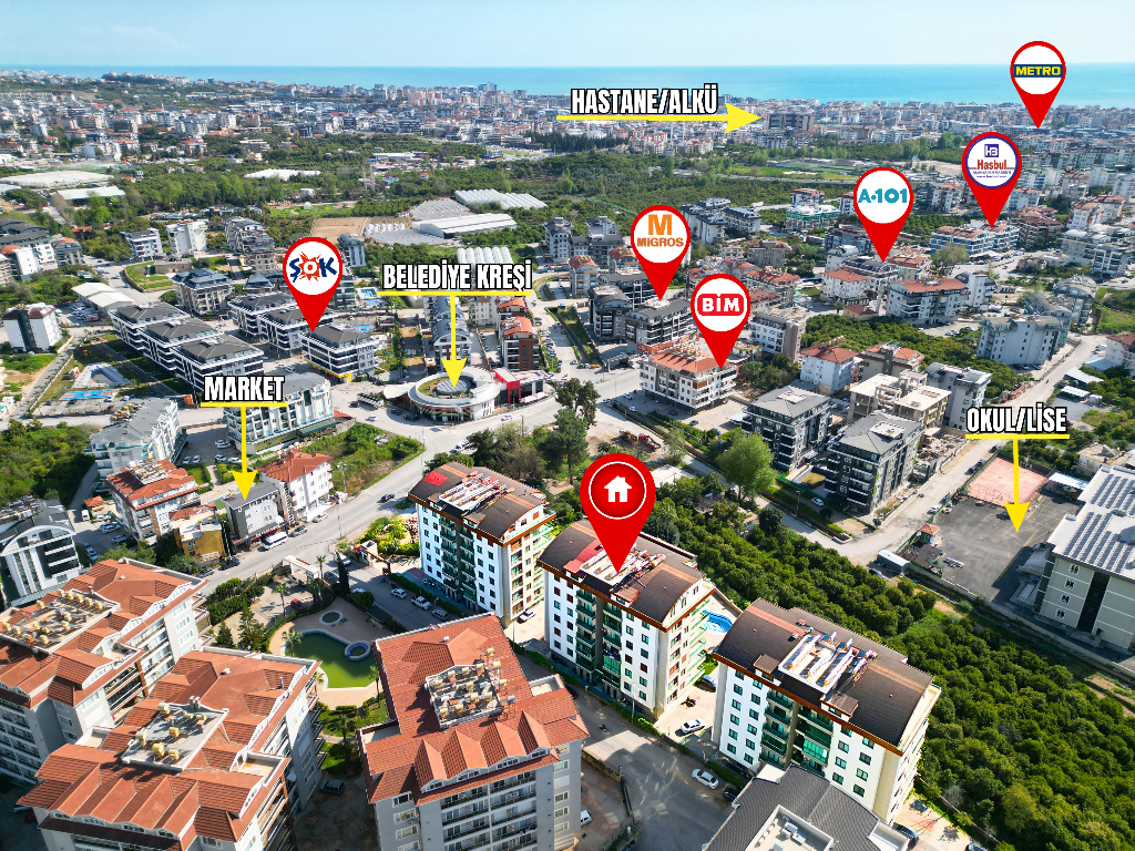 Located just 2.5 km from the sea, the residence combines tranquility with easy access to the vibrant coastline. The complex itself is rich with amenities designed to enhance your lifestyle: a refreshing outdoor pool, fitness center, sauna, children’s playground, landscaped garden, barbecue and camellia areas, and open parking. Additional features such as natural gas infrastructure, elevator, generator, meeting room, and on-site caretaker ensure comfort and security all year round.