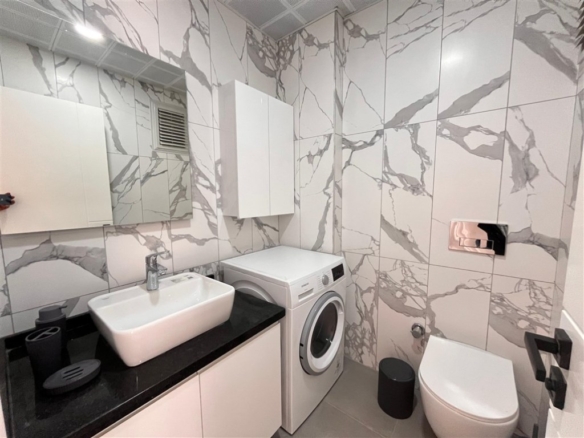 Located on the first floor, this brand-new (never previously occupied) 2+1 apartment welcomes you with a bright and airy atmosphere from the moment you step inside. With a total living space of 90 square meters, the home features an American-style open kitchen that flows seamlessly into the living area, creating a warm and sociable environment ideal for both everyday life and entertaining guests.