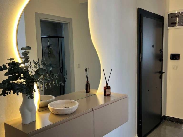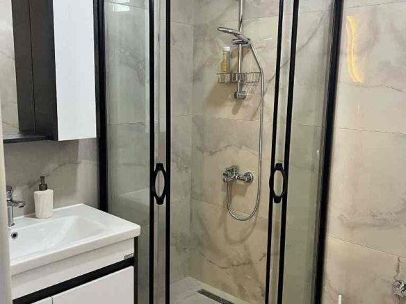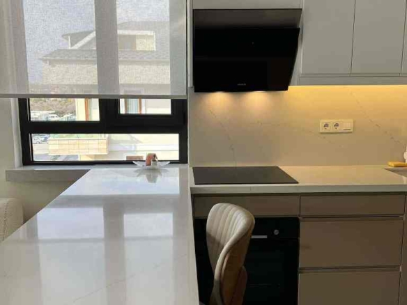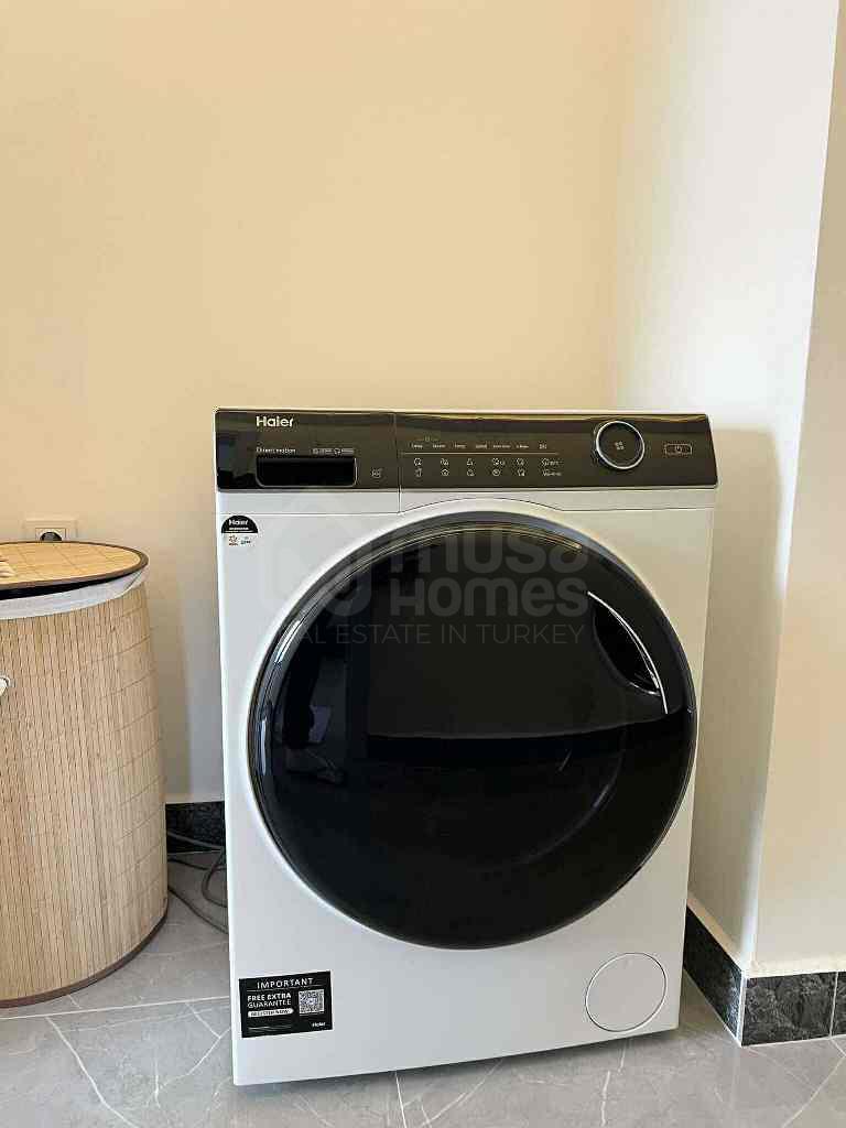 The apartment comes fully furnished and equipped with premium-quality appliances and furniture. Every detail was carefully chosen for reliability and style — from the Bosch induction cooktop and Bosch oven with sliding rails to the Siemens dishwasher, Samsung refrigerator, and Arçelik air conditioning system.