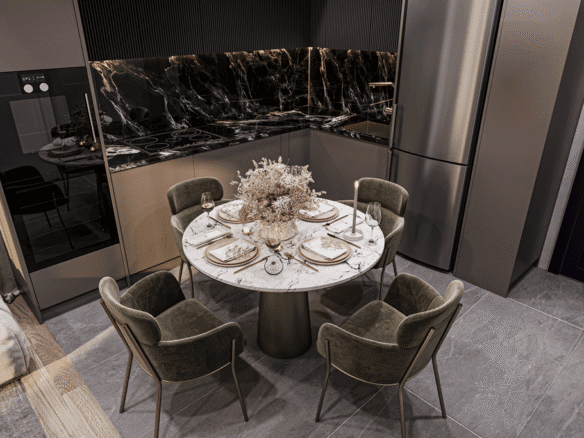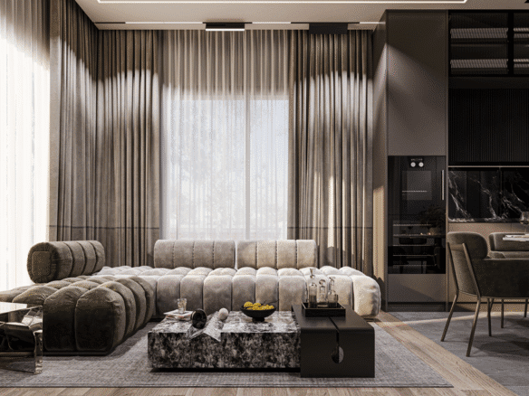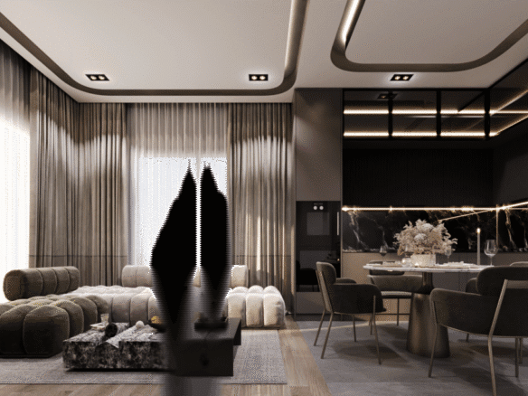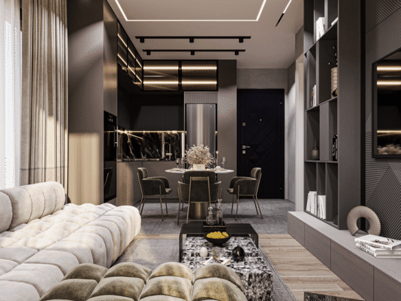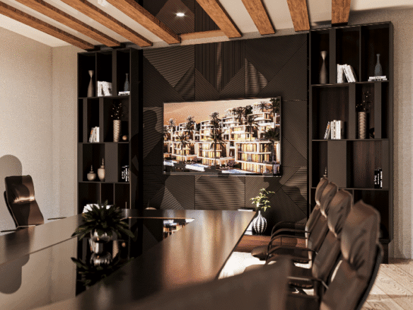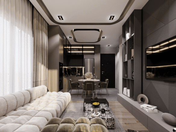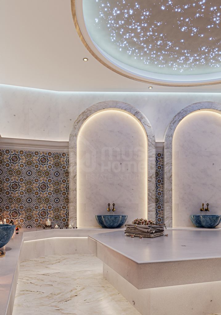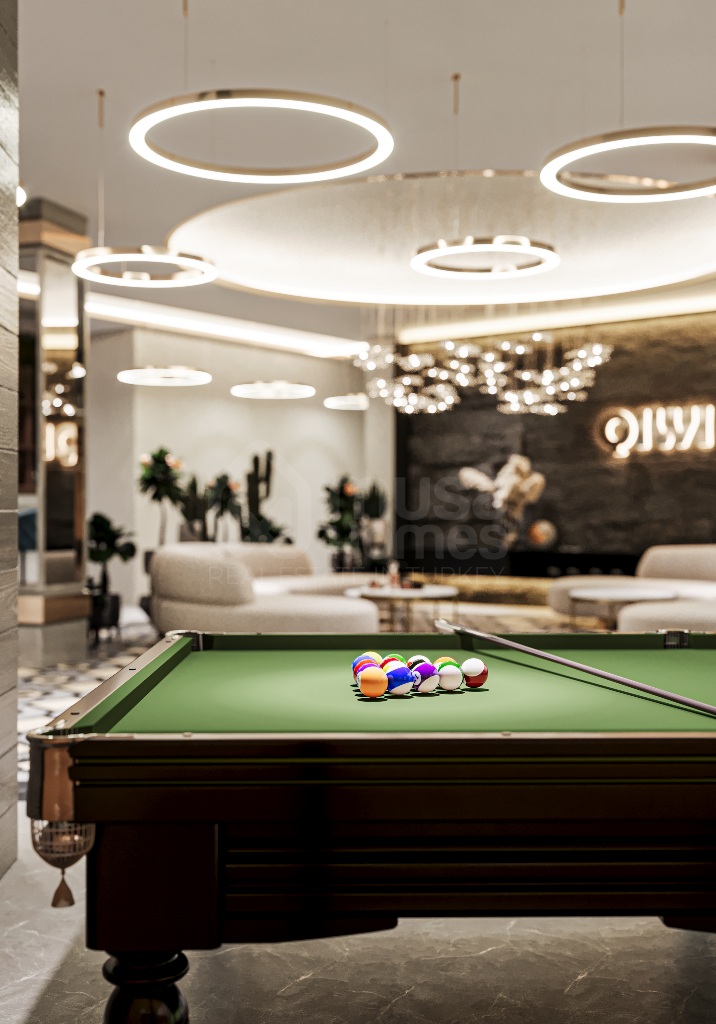 Indoors, the amenities create an atmosphere of luxury and relaxation. A children’s playroom provides a safe and fun environment for the youngest residents, while adults can unwind in the hamam, stay active in the fitness salon, or gather in the stylish lobby. For entertainment, a cinema room adds a touch of exclusivity, allowing residents to enjoy movie nights just steps from their homes.