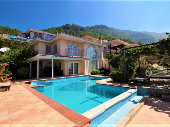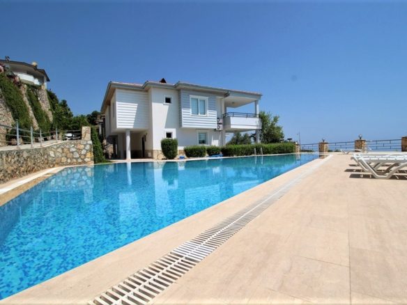 Furnished 5+1 Triplex Villa with panoramic sea view in Kargicak id 4916