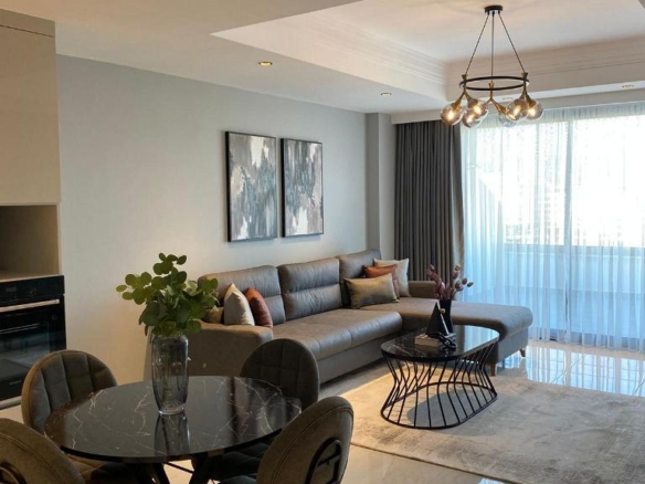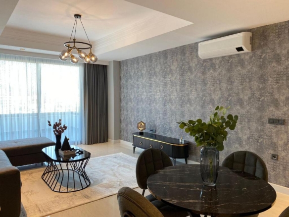 Perched on the sixth floor is the featured 1+1 apartment, a cozy yet efficient home with a total area of 60 square meters. Every detail inside has been prepared with convenience in mind. The unit comes fully furnished, making the transition to your new life effortless—no waiting, no heavy planning, just the simple pleasure of unlocking the door and settling in. Large windows invite natural light to fill the living space, while the elevated floor offers a pleasant vantage point over the vibrant surroundings below.
