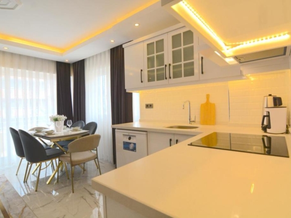 BLUE & WHİTE RESİDENCE Furnished 1+1 apartment close to the sea in Oba id 7065