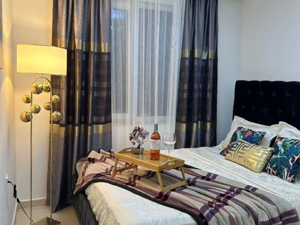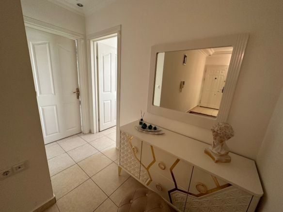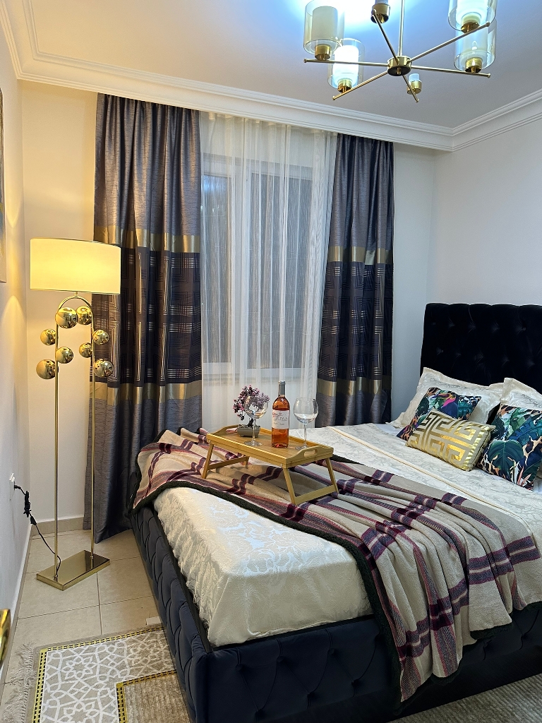 On the fourth floor of one of these buildings, there is a beautifully furnished 2+1 apartment, spreading across 115 square meters of thoughtfully designed living space. As you step inside, you are welcomed by a sense of openness and ease — a home that is ready to live in, where every detail has already been carefully arranged.