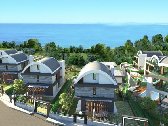 It will be 2 – floors 9 villas in total, but they have different layouts. For example 6 villas are 4+1 and 260 m², 2 villas are 4+1 and 190 m² and finelly the last one is 10+1 and 450 m². So, everyone may choose villas with different views – to the pool, mountain or sea, up to what you like more.
