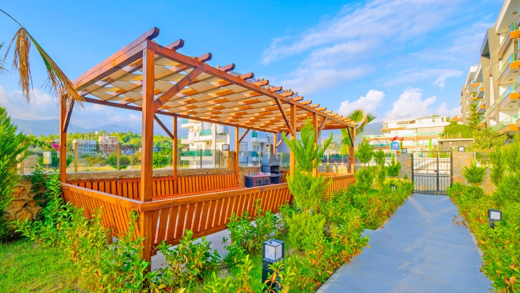 KAVİ HOME Furnished 2+1 garden duplex with a sea view in Kargicak id 6911