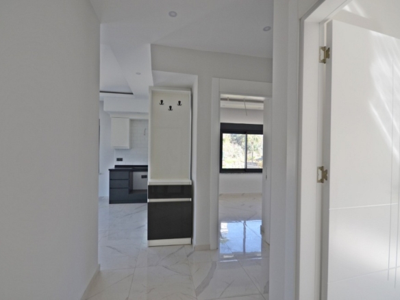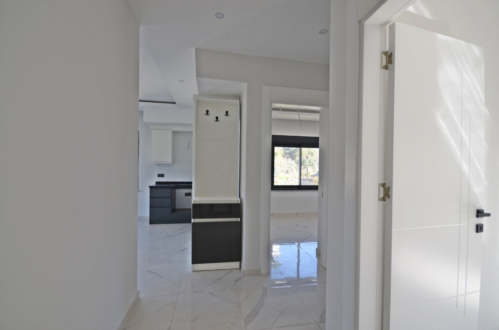 As you step inside, you are welcomed by an airy living room where natural light flows freely through wide windows. The mountain view stretches endlessly beyond, painting a peaceful landscape that changes color with every hour of the day—soft pink at sunrise, deep green under the midday sun, and golden hues as evening falls. The balcony, perfectly positioned, becomes a quiet retreat where you can sip your morning coffee while listening to the distant whisper of the sea.